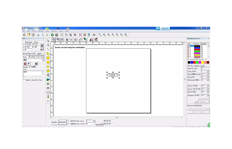 The marking software has powerful functions and can be compatible with files of CorelDRAW, AutoCAD and other software; it supports PLT, PCX, DXF, BMP and so on, and can directly use SHX and TTF font library; it supports automatic coding, printing serial number, batch number, date, bar code, two-dimensional code, automatic number skipping and so on, and USB interface output control.